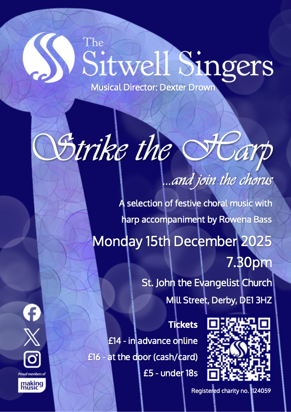 ….and join the chorus. The Sitwell Singers team up with local harpist Rowena Bass for our annual Christmas extravaganza. We present a varied programme of stunning seasonal music, singing traditional favourites and introducing something new – a highlight for the whole family.
